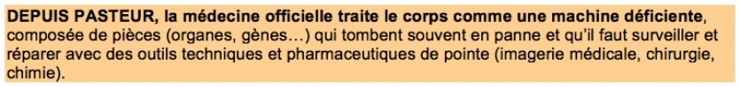 - Explorons les croyances et les mythes qui sous-tendent l'émergence, la croissance et la fuite en avant de cette médecine mécaniste, industrielle et va-t-en-guerre.