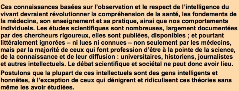 - Appuyons-nous sur les apports de l'agnotologie (théorie de la fabrication de l'ignorance), les ressources de l'inter/transdisciplinarité, le mélange de la pensée complexe et du bon sens, les apports de la physique moderne, les avancées de la nouvelle biologie et des neurosciences, les failles scientifiques de la médecine d'école...
