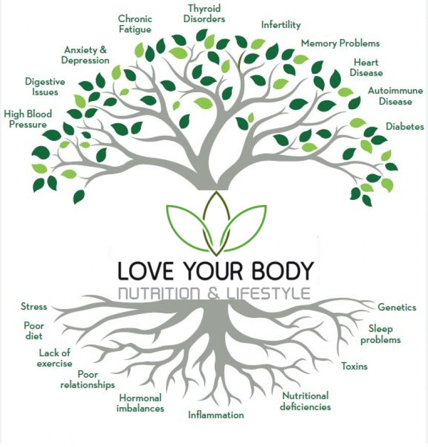 Une branche, plusieurs racines : Si vous souffrez d'une certaine maladie ou affection, nous identifions une ou plusieurs "causes profondes" qui vous sont propres. Cela signifie que quelqu'un d'autre souffrant de la même affection peut avoir un ensemble différent de causes profondes. Par exemple, vos maux de tête hormonaux peuvent être dus à une mauvaise élimination des œstrogènes par le foie, ceux de votre ami à une carence en vitamine B et ceux de votre voisin à un déséquilibre du microbiome intestinal. Un symptôme (branche) avec de nombreuses racines.