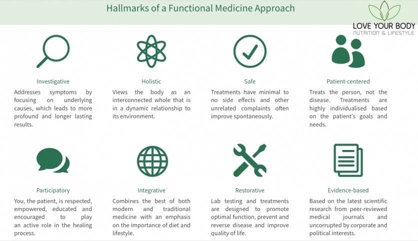 La médecine fonctionnelle est une approche globale de la santé, holistique, centrée sur le patient, fondée sur la science, la collaboration et la biologie des systèmes, qui s'intéresse aux origines et aux causes sous-jacentes de la maladie et des symptômes. Il s'agit d'une approche globale qui met l'accent non seulement sur le rétablissement de la santé, mais aussi sur la prévention des maladies.