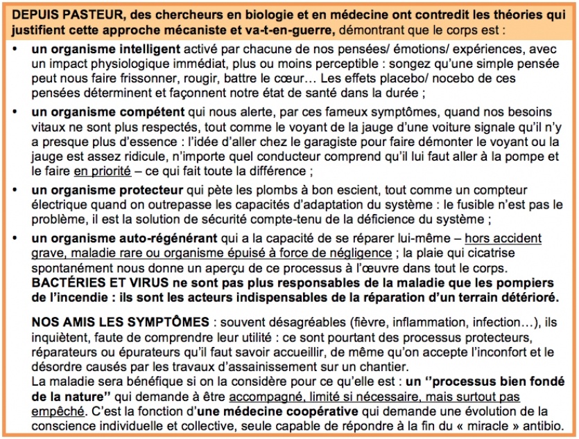 C'est pourquoi si un arbre est malade, on ne va pas le peindre en vert, on regarde la terre, le soleil, l'eau et les nutriments. C'est exactement comme cela que le nouveau modèle de médecine voit le corps et nous regardons la maladie et les déséquilibres de la même manière.