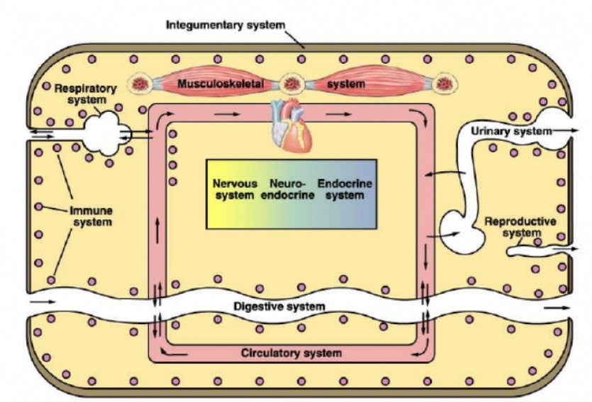 Grâce à des milliers de réactions biochimiques, tous ces systèmes peuvent apporter en symbiose avec l'autre une ou plusieurs functions nécessaire et spécifiques pour maintenir l'équilibre interne et un fonctionnement optimal pour maintenir la santé . Le corps est totalement dynamique, ces systèmes travaillent coopérativement et sont interconnectés, ils ne peuvent pas être départementalisés.